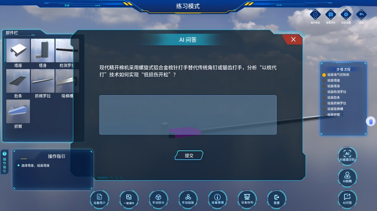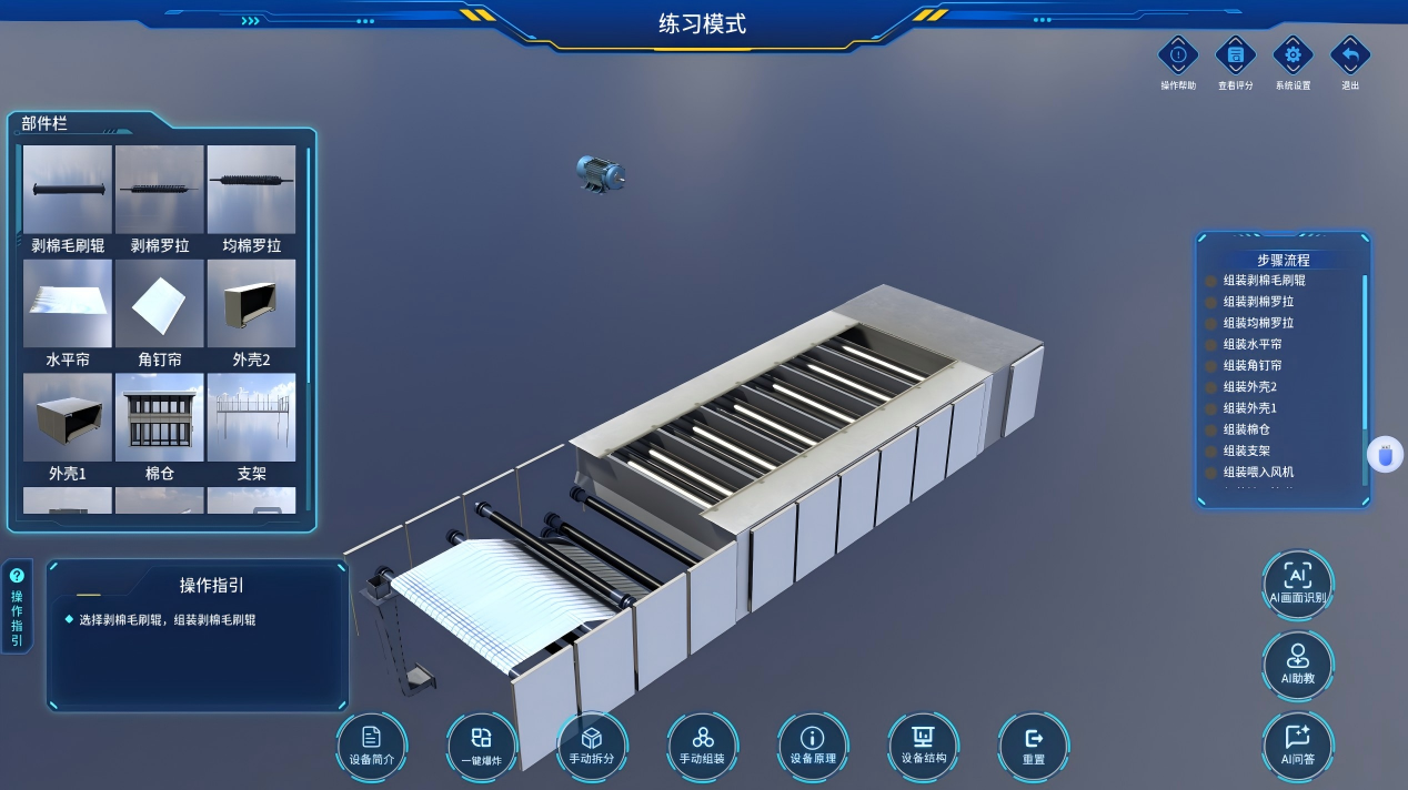 AI +精开棉机数字化资源虚拟仿真软件 |