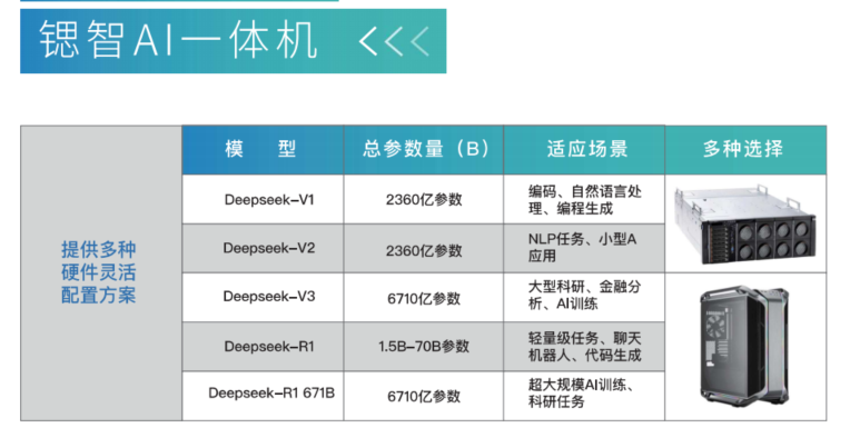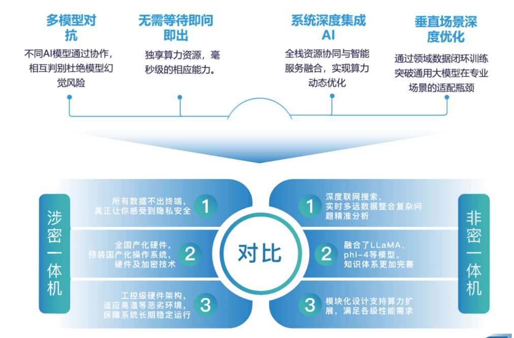 1、算力芯片:搭载国产高性能 AI 推理芯片,支持大模型高效推理。