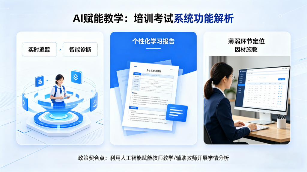 第二,AI智能评测与个性反馈。系统内置培训考试系统,基于AI算法对学生操作行为进行实时追踪与智能诊断,自动生成个性化学习报告,精准定位薄弱环节,帮助教师实现“因材施教”,与政策要求的“利用人工智能赋能教师教学”“辅助教师开展学情分析”高度契合。