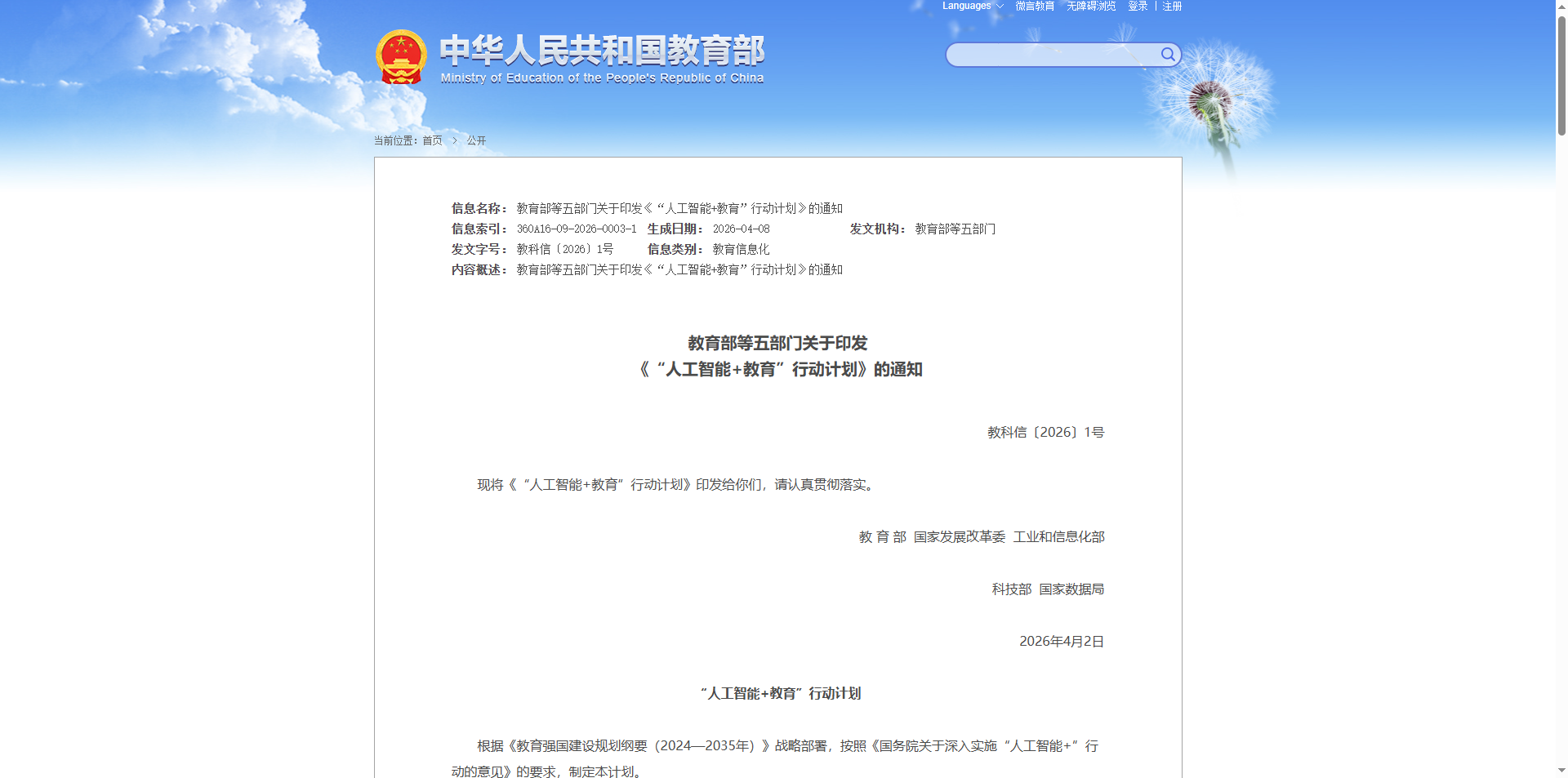 2026年4月,教育部等五部门联合印发《“人工智能+教育”行动计划》(以下简称《行动计划》),明确提出到2030年构建人机协同、虚实结合、泛在可及的智慧教育新形态,推动教育教学模式、科研范式与治理模式的系统性变革。这一顶层设计标志着我国高校教学培训进入以人工智能为核心驱动力的新阶段,也为高职和本科院校的数字化转型指明了方向。