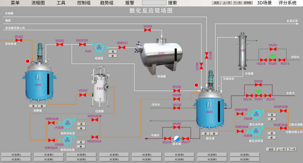 4.DCS仿真,仿真工艺是采用的日本恒河3000的一个DCS来1 : 1仿的中控页面。