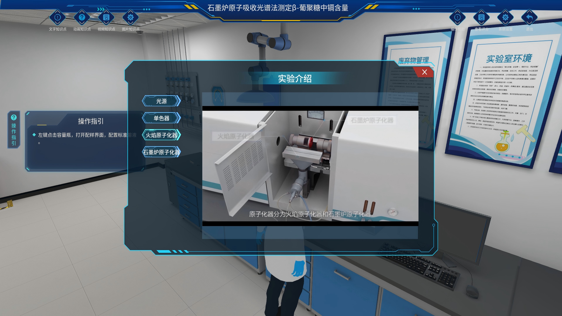 1、软件场景采用3D建模,以真实实验室为基础进行建模,通过实际设备操作规程,使学生进行实际的操作练习。