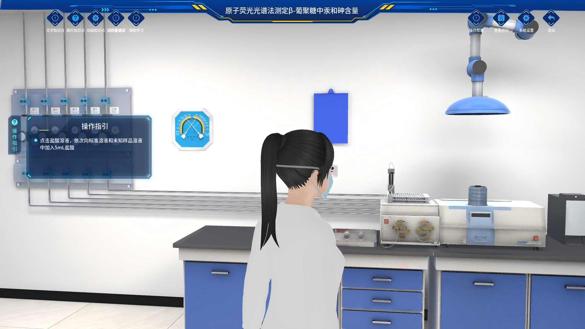(2)考试模式:在虚拟场景内,完成实验操作流程,老师在pc版后台可以看到学生成绩。