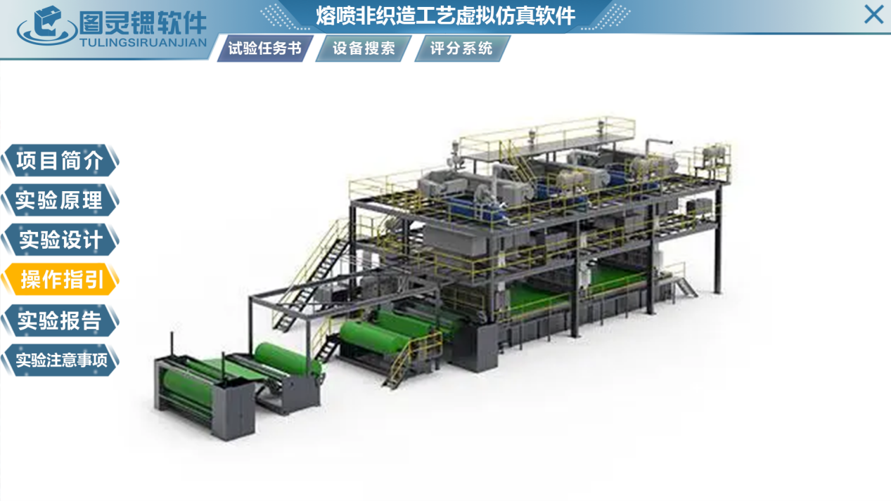 产品介绍:非织造车间工艺流程虚拟仿真软件是一款基于虚拟现实技术的工厂模拟软件,模拟了非织造工艺流程,包括原材料投放、预处理、生产、成品检测等多个环节,让学生在虚拟环境中学习并掌握非织造工艺流程和质量控制方法。