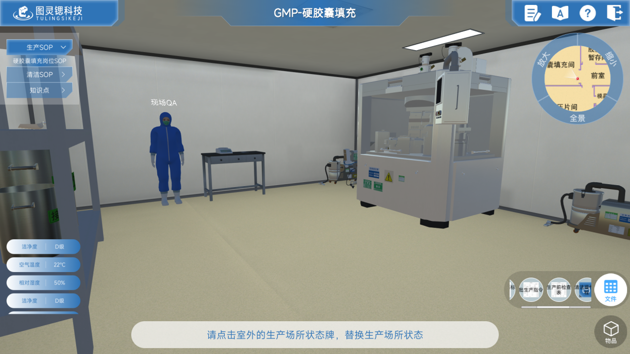 | GMP制药厂区漫游虚拟仿真软件 | 硬胶囊生产线虚拟仿真软件 |