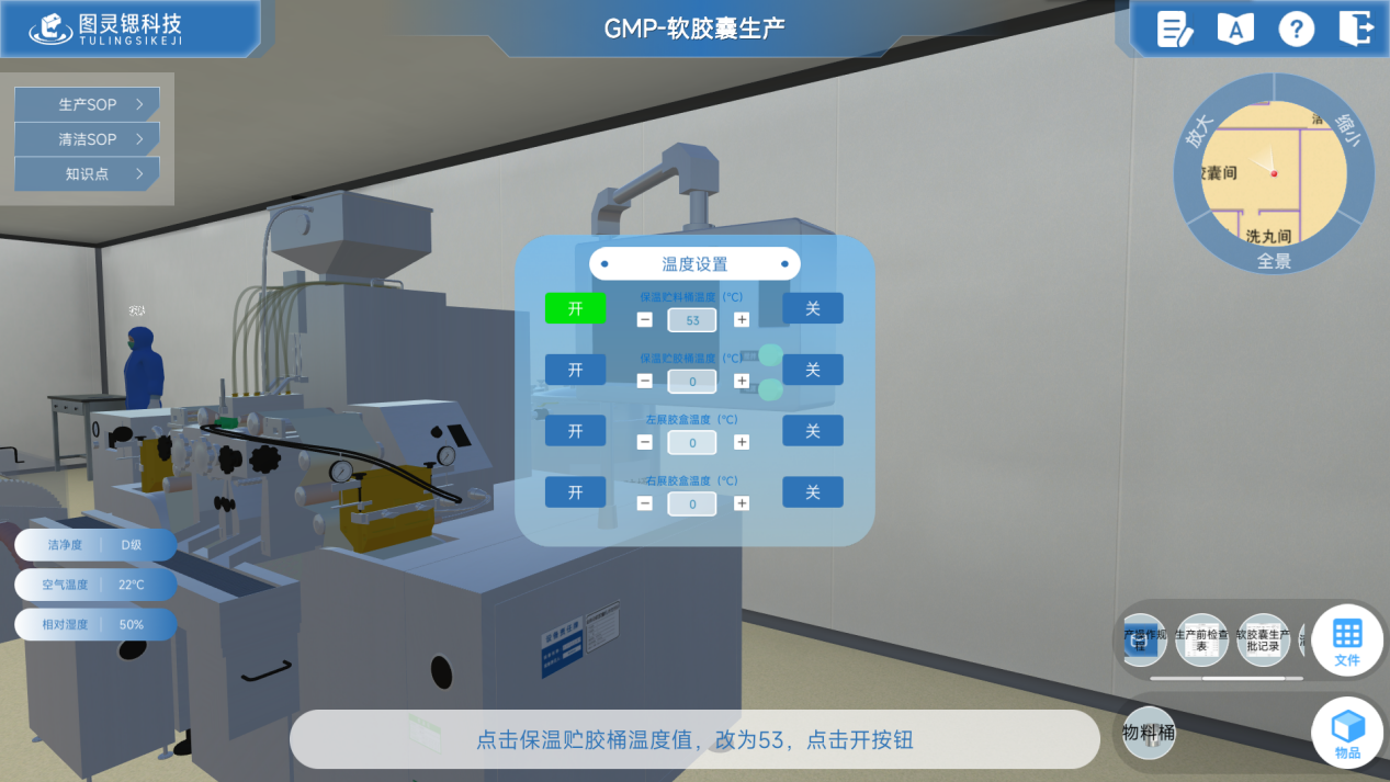 | 固体制剂生产车间漫游认知仿真软件 | 软胶囊生产线虚拟仿真软件 |