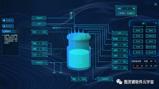 微生物发酵生物反应器半实物仿真软件依托虚拟仿真系统,数字化建设,配合半实物设备还原真实的发酵场景。