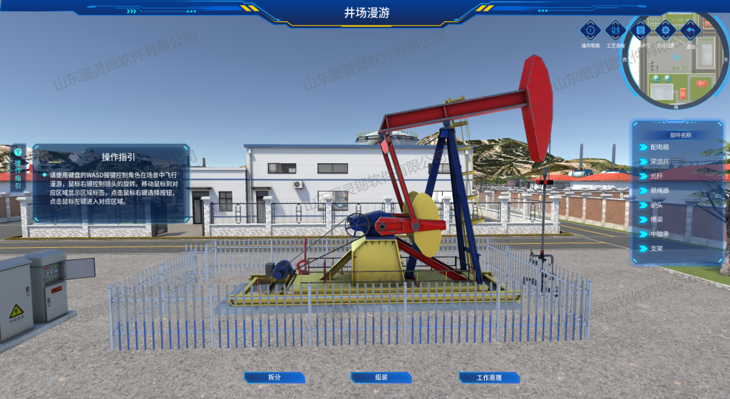 系统采用最新的3D建模技术,精确地将油田设备以1:1的比例进行还原,使每一台设备的外观和细节都得到了真实呈现。通过高度还原,用户可以直观地感受到油田设备的真实形态和构造,同时也能更深入地了解每个设备在实际操作中的作用。为了增强互动性和学习体验,设备内部结构可以进行可交互式剖析,用户能够轻松查看各个组件的布局和功能,从而更好地理解设备的工作原理。此外,系统还动态演示了设备的核心部件,实时呈现其在工作过程中的动作和变化,让用户对设备的运行机制有一个更加直观和全面地认识。这种高度还原和交互式的设计,不仅提升了油田设备的学习效果,也帮助用户更好地掌握设备的操作和维护技能。