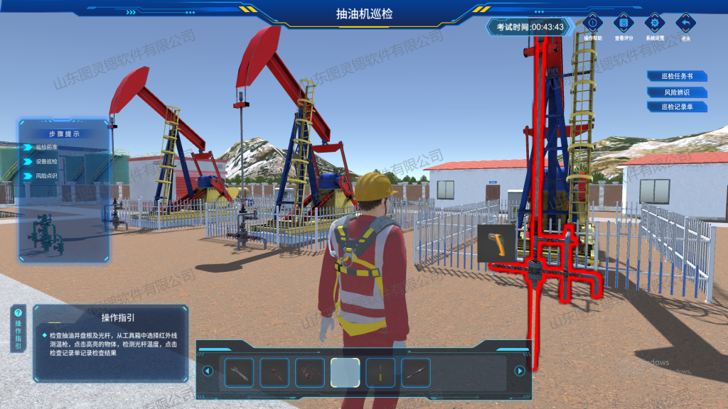 系统精心设计并真实再现了完整的采油全流程作业环节,从油田的开采准备到最终的油井关闭,每一个步骤都一丝不苟,确保用户能够全面了解和掌握整个采油过程。为了提供更加真实和精准的操作体验,所有的作业流程都严格遵循行业标准操作规范,确保每个环节的操作都符合真实世界中的安全和技术要求,帮助用户在模拟环境中学习和适应实际工作中可能遇到的情况。此外,系统还特别设置了多样化的工况场景,包括不同的环境条件和操作挑战,让学习者能够在变化多端的作业条件下灵活应对,提升其实际操作能力和应急处置能力。通过这种高度还原的作业流程设计,用户不仅能够更好地理解采油技术,还能在各种复杂的场景下进行模拟训练,为实际操作做好充分准备。