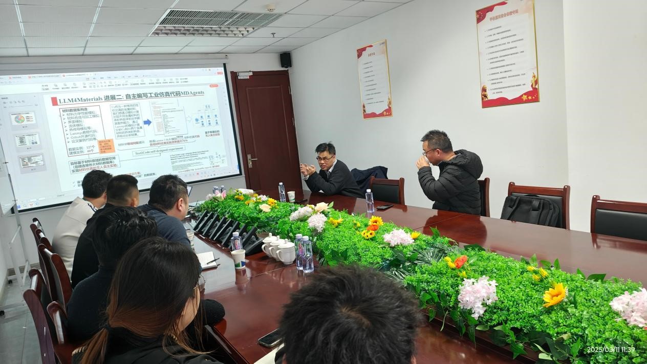 会议上,王振宇教授团队就材料领域「基于大模型的AI4Sciences技术路线」与图灵锶研发团队进行了深入探讨。会议达成了以领域模型为中心,构建数智科研智能体系为核心的中心思想。通过本次考察调研活动,山东图灵锶软件有限公司与北京大学进一步明确了合作目标和方向,为未来开展更深入、更广泛的合作奠定了坚实基础。