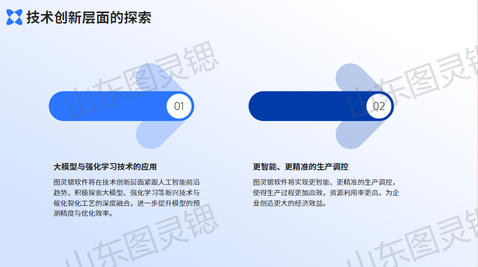 展望未来,图灵锶软件在催化裂化智能优化技术领域的探索永不止步。在技术创新层面,将紧跟人工智能前沿趋势,积极探索大模型、强化学习等新兴技术与催化裂化工艺的深度融合,进一步提升模型的预测精度与优化效率,实现更智能、更精准的生产调控。在应用场景拓展上,计划从单一催化裂化装置优化向全产业链协同优化迈进,助力企业打通从原料采购、生产加工到产品销售的全流程数据壁垒,构建一体化智能生产生态体系。