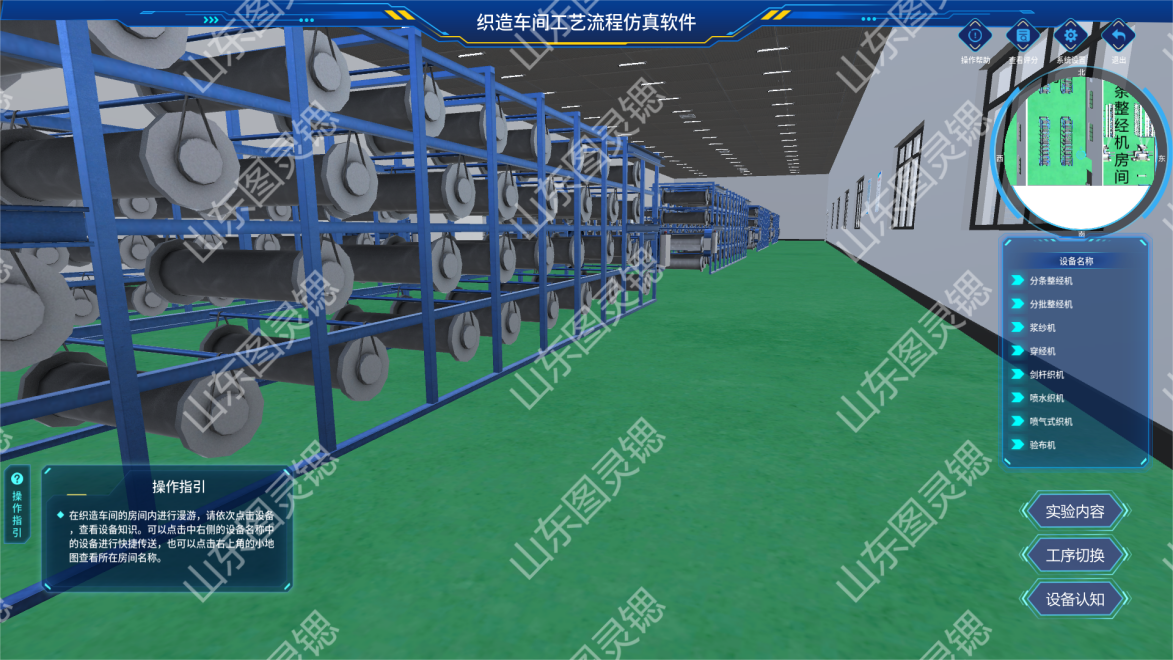 从纤维开松→纱线加捻→整经穿综→织机织造→后整理,全流程3D可视。