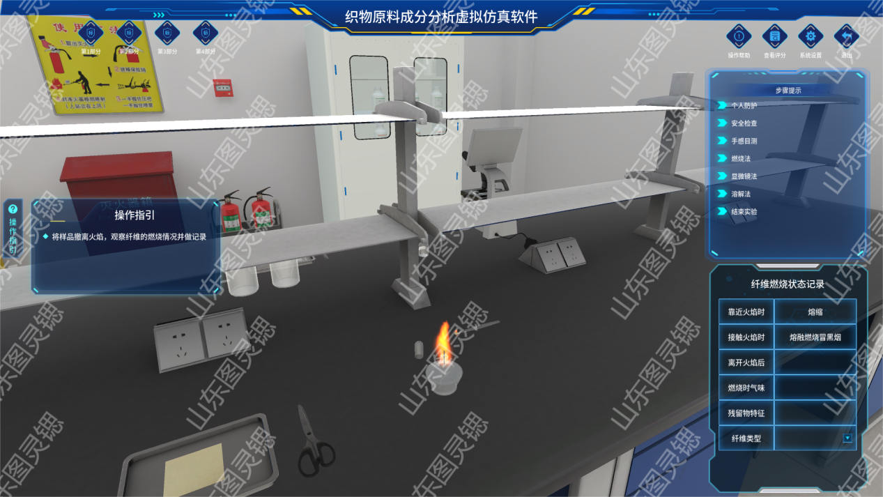 操作各类虚拟检测仪:模拟织物原料成分分析检测全流程。