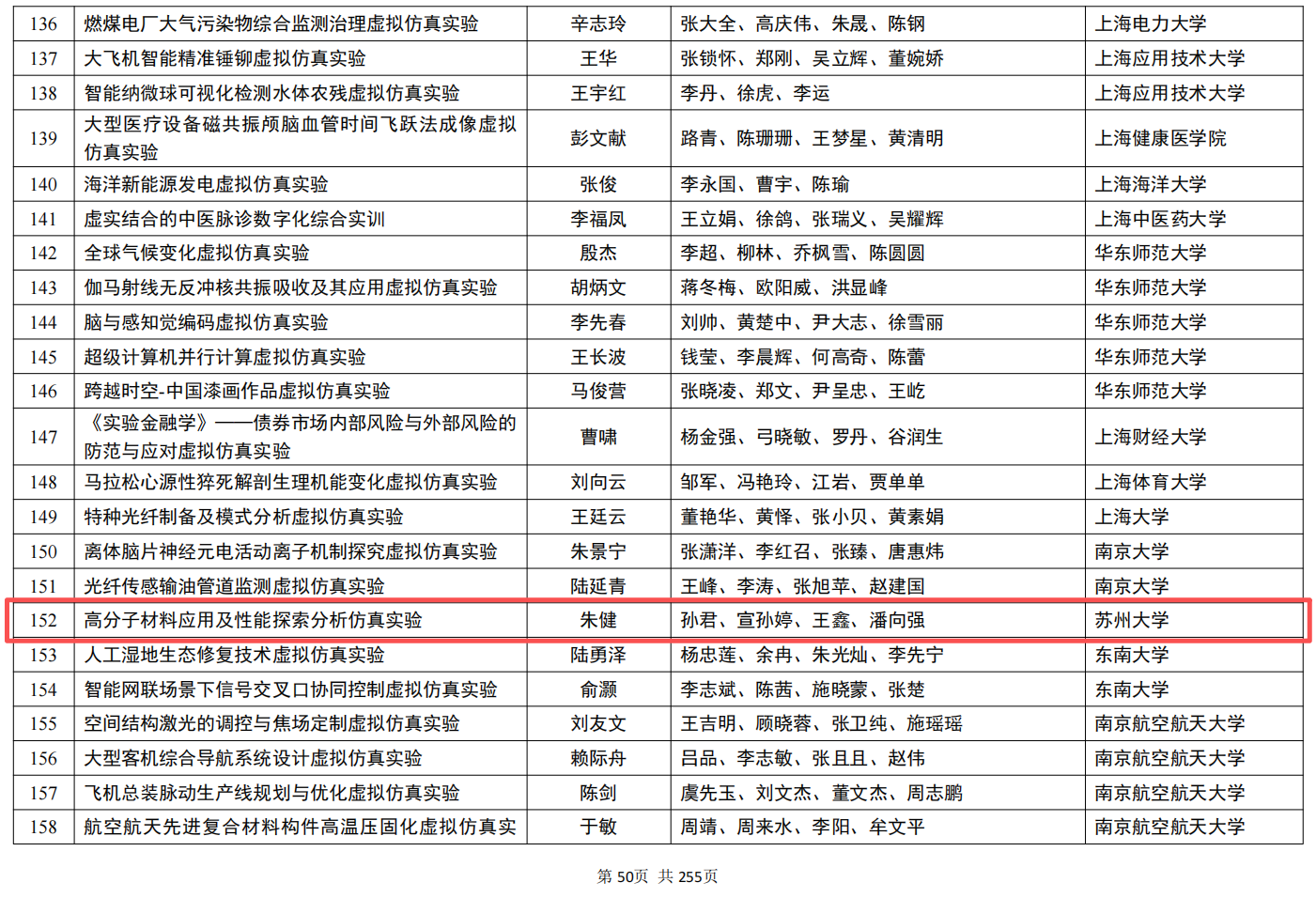 “高分子材料应用及性能探索分析仿真实验”入选国家级一流本科课程
