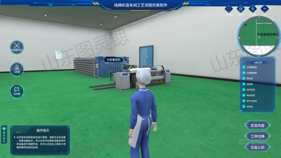 沉浸式实践平台支撑:现场演示的行走平台功能,更是让领导们眼前一亮。该功能模拟纺织车间真实布局,用户可通过 “虚拟行走” 方式,近距离观察设备结构(如喷气织机的喷嘴、络筒机的导纱部件),甚至可点击操作虚拟设备,体验参数调整对生产结果的影响。这一功能已在新疆应用职业技术学院的实训课程中落地,有效解决了 “设备数量有限、实操风险高” 的教学痛点。